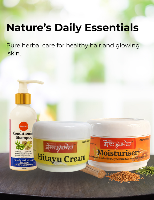 Rejuvenate your hair with the healing touch of Ayurveda. Our herbal oils and shampoos nourish the scalp, reduce hair fall, and restore shine.