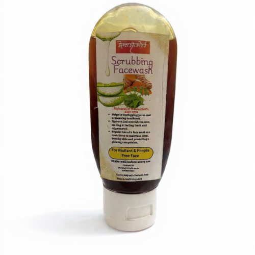 Rejuvenate your skin with the goodness of Ayurveda. This Ayurvedic Scrubbing Facewash combines gentle exfoliation with deep herbal cleansing to reveal fresh, radiant, and blemish-free skin. Infused with Aloe Vera, Neem, Turmeric, Sandalwood, and Jyeshthmadh (Licorice), it helps purify pores, reduce acne, and brighten your complexion naturally.